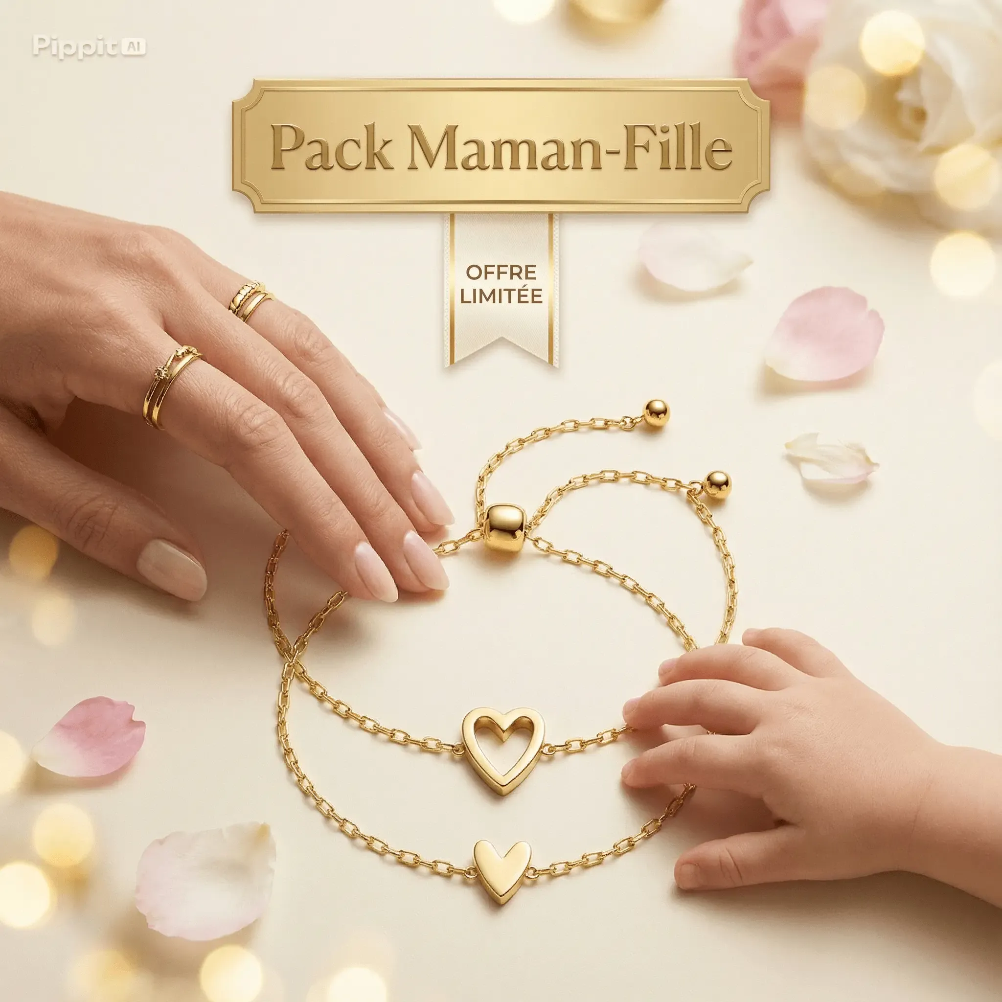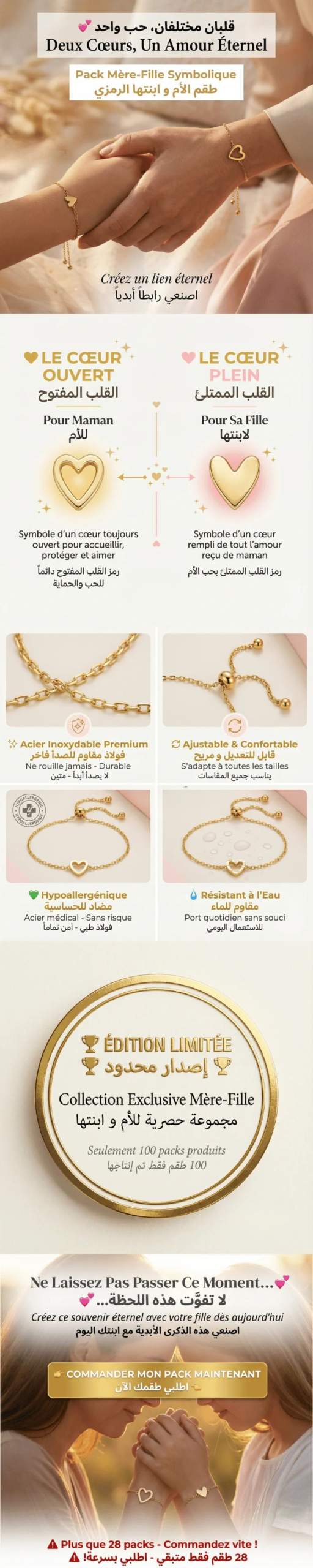 زوج أساور قلب للام و البنت مصنوعة من (ACIER inoxidable ORIGINAL) آمنة 100% للأطفال والبشرة الحساسة، مقاومة للماء 💕